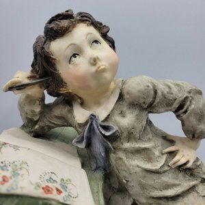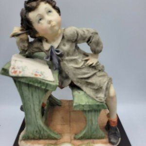 Early Giuseppe Armani Capodimonte Figurine Boy sitting on School Desk Vintage