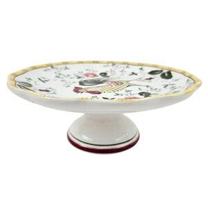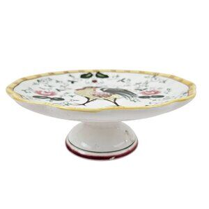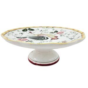 Early Provincial Round Compote Rooster Roses Ceramic Hand Painted UCAGCO Japan