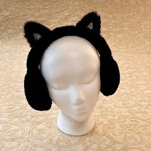 Soft black plush cat ear muffs with glitter detail on the ears. No tags featuring a brand. Personally purchased but never worn. No visible imperfections.