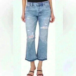 Earnest Sewn Blue Jeans Mud Rise Flare Crop Jane 27