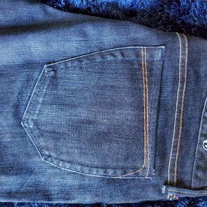 Earnest Sewn Decca bootcut jeans (indigo, raw denim feel); size 28, 98% cotton 2% elastane; 8" rise, 34" inseam, 17" hips