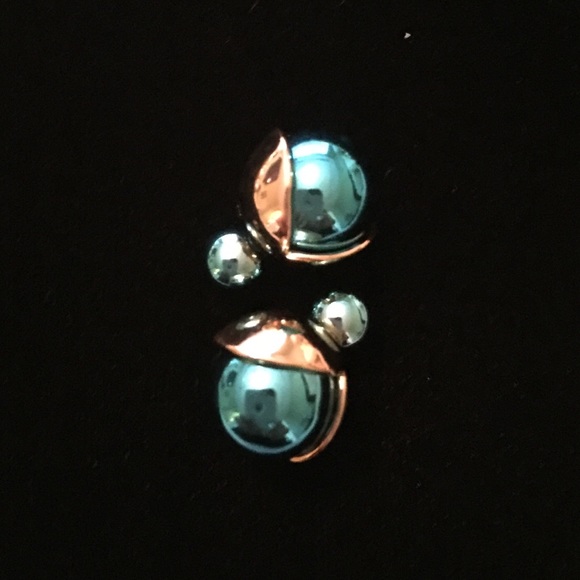 Double sided gold plated and turquoise ball earrings.