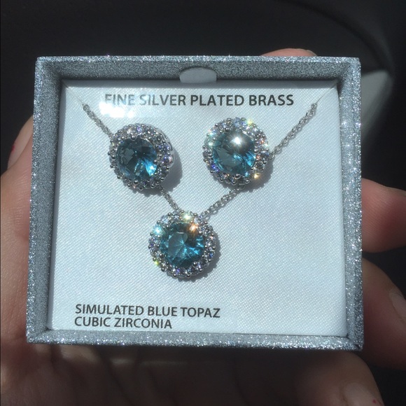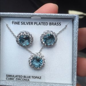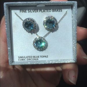 Brand new earring fine silver plated brass simulated blue topaz cubic zirconia