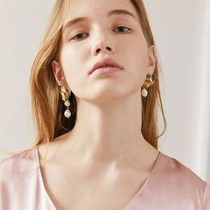 AOMU Korea S925 Sterling Silver Pin Metal Gold Triangle Irregular Freshwater Pearl Asymmetry Long Drop Earrings for Women Girl