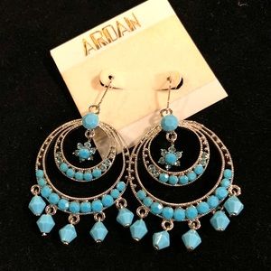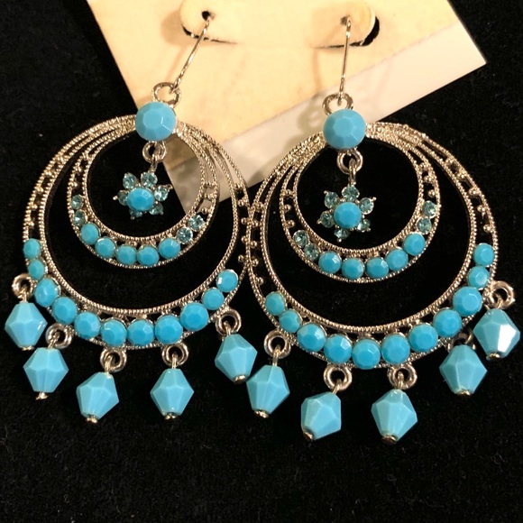 Beautiful turquoise color earrings with mixed beads and crystal