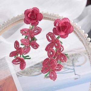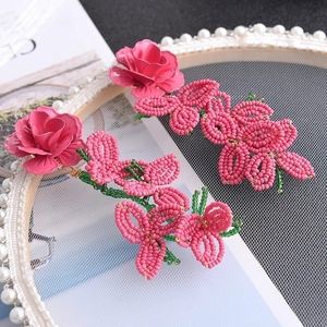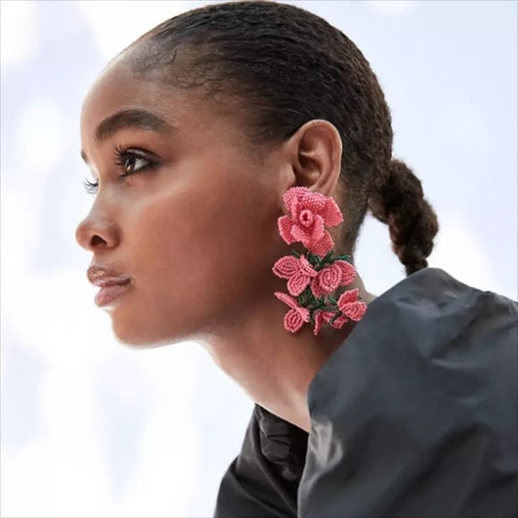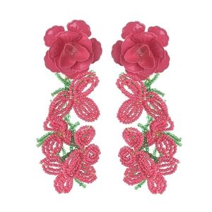 Handmade Pink Beads Big Flower Earrings