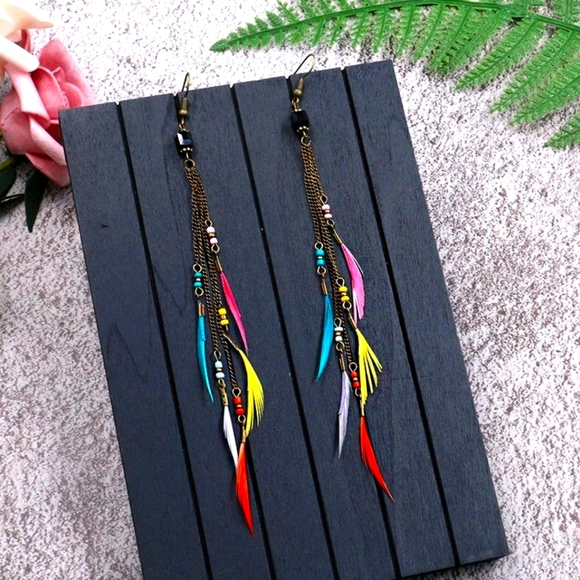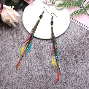 Bohemian Feather Dangle Long Tassel