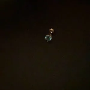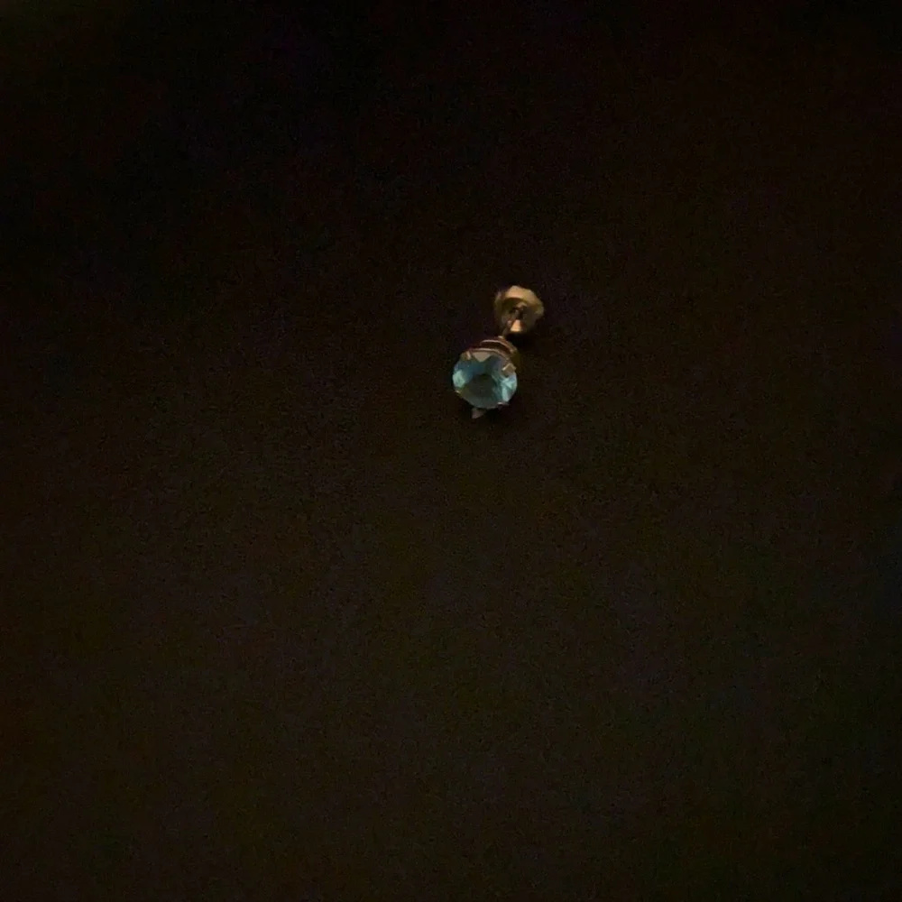 14k gold stud with a light blue stone. I only have the one, I lost the other.