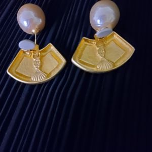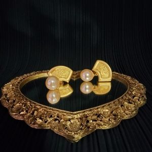 Karl Lagerfeld Oversized Vintage Iconic Monogram &Fan Clip- on Earring 1990s