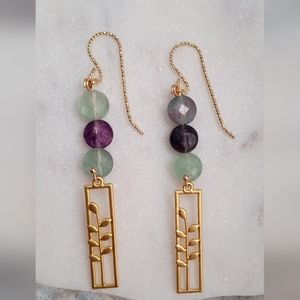 Beautiful handmade earrings 14k gold plated Faceted Fluorite stone 8mm