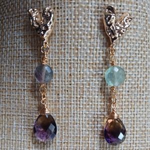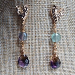 Beautiful handmade earrings plated in 14k gold with natural faceted Ameretrino Quartz stones!!