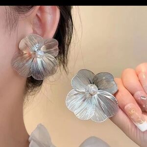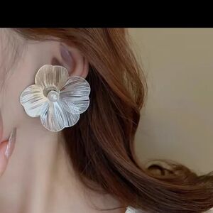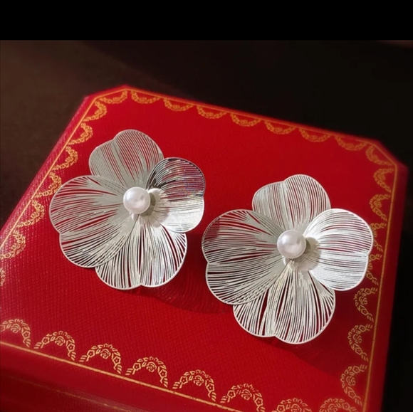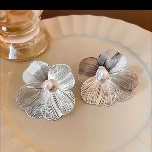Fashion stud pearl earrings personalized versatile silver needle metal flower earring