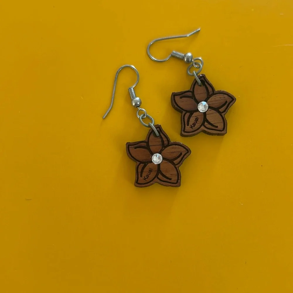 Wooden earring flower style with diamond