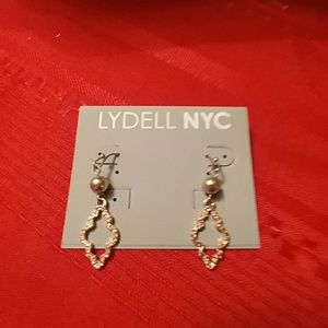 Three pairs of earri,g..gold tone...silver tone and jewel cluster....for priced ears...never worn!! Lydell NYC
