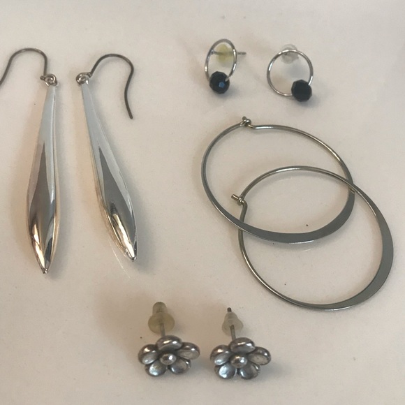 Flowers and hoops are solid silver. Flowers are Brighton brand. Other two sets silver coated.