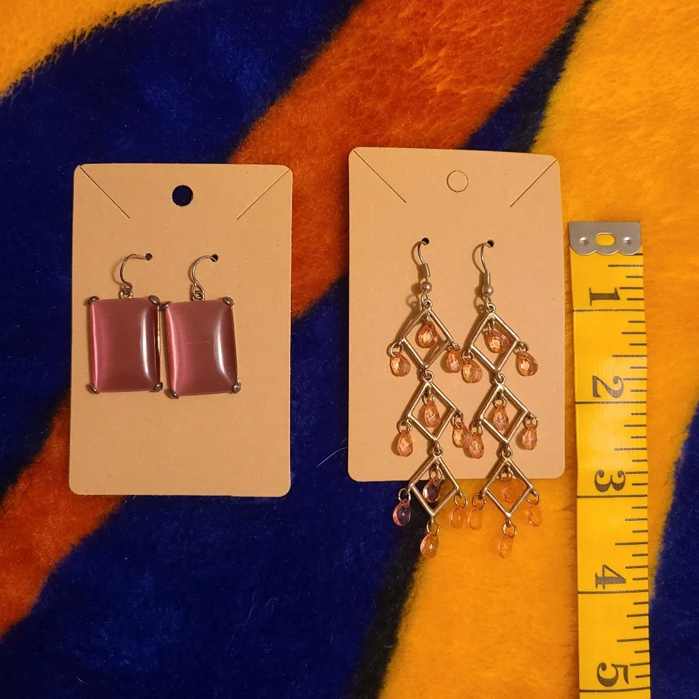 two pairs of pink and silver dangle earrings measurements pictured *cats and dogs in home* *smoke free home* ❗bundle and save❗