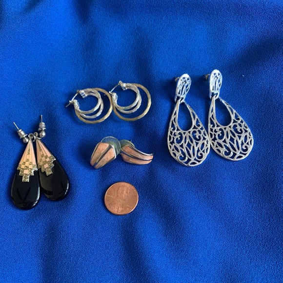 Pierced. Hoops are silver tone and gold tone. The others are silver tone. Vintage.Penny not included.