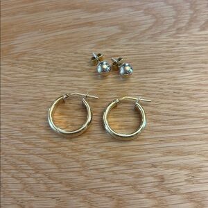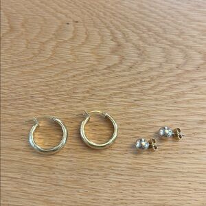 I don’t know what material the studs are made from but they appear to be the same shine & hue as the hoops so may be gold plated as well