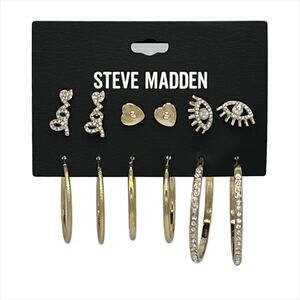Earring Bundle of FIVE 6 pc Earing Sets- Steve Madden Gold Plated Rhinestone