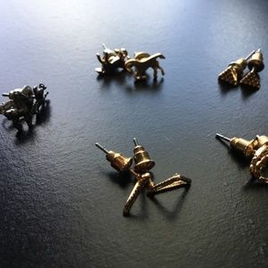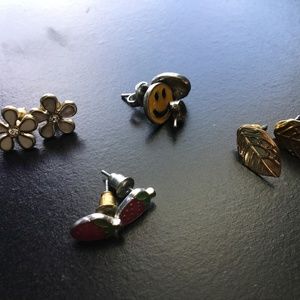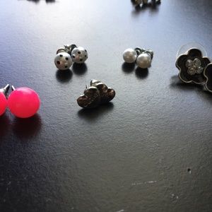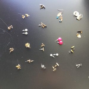 19 pairs of earrings, all come with backs though some of the pairs do not have matching backs. They are all in good condition, and have hardly been worn if that's a concern for you lol. Comes with a homemade earring holder <3 :)