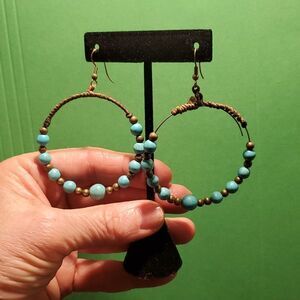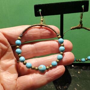 Earring Hoop like,Lucky Brand, Turquoise & Brass Beads, Used Condition.