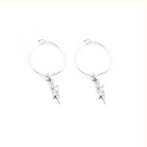 Earring Hoop w/ Pave Diamond Lighting Bolt Pendant Sterling Silver by Jungle Via