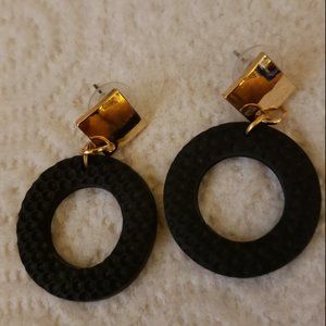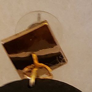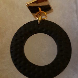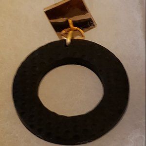 Black circle ring with gold diamond shaped top.