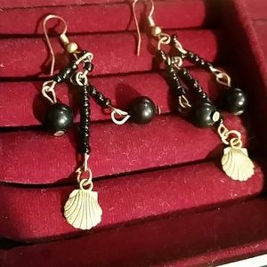 Gypsy Hoops in Silver and Gold, Butterfly Studs, Black and Gold dangling Sea Shells, and Vintage Black and Gold swoosh.
