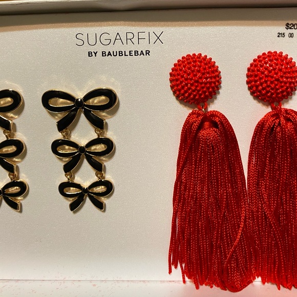 New Earring Set (still in the box) gold/black bows and Red Earrings
