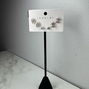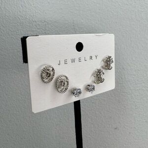 ✨NEW✨ beautiful silver tone CC post earrings set. This package comes with all three as shown, they are the size of your pinky nail. They have the rubber clear backs. Sold as seen. ⛔️Ask questions prior to purchase⛔️