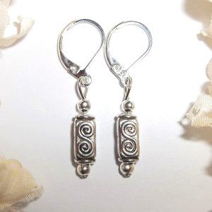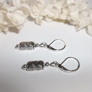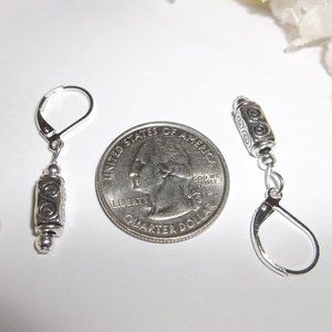 This adorable little beaded earring set is brand new & handmade by me - wvluckygirl. Handcrafted with antiqued silver toned costume jewelry beads. The pair dangle and drop from 925 sterling silver lever backs for her pierced ears. Nickel safe. Measure 1 3/8 inches tall & 1/4 inch wide. Each single earring weighs 1.4 grams. Very lightweight. Buy it now before someone else does!