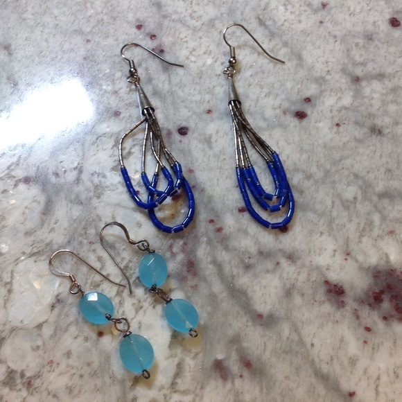 Dark blue/silver and light blue/silver dangle earrings