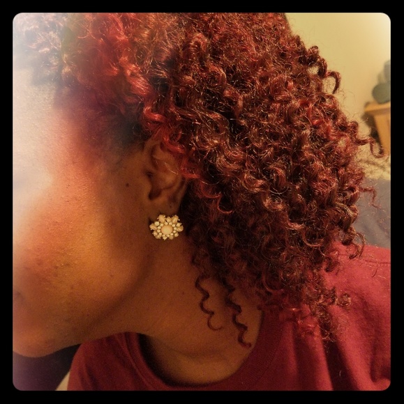 Two sets of earrings for any occasion. One cosmetic stud, nude color emphasized with bling. One long golden shimer to the ear.
