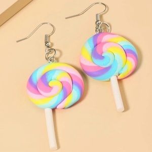 • dangle earrings of cute colorful lollipops last photos has quarter show for size but unfortunately the quarter is not included ! You get what you see in photos minus quarter lol