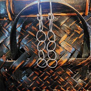 3 sets of dangling earring. They have great movement and are on the lighter side. 1 is rectangle wire with spiral in the middle. 2 is a simple 5 link of circles and 3 is hammered metal look with geometric shapes.
