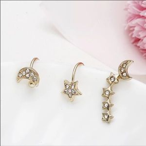 NWT earring set. Comes with 2 earring cuffs and a normal earring. No trades( comes with 2 pairs of each so a total of 6 earrings) available in gold and silver.