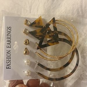 18 pairs of earrings, gold, animal print, pearl, hoops, studs, heart-shaped