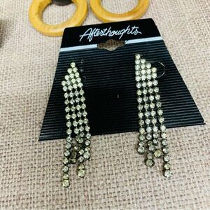 Blue stone dangles, afterthoughts rhinestone dangles, stainless steel flowers, wood door knockers