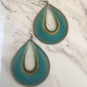 Teal Earrings made out of thread, rhinestone bracelet, red wrap bracelet, chain black and gold stretch bracelet, gold and black cuff, cream and pink rose rings size 7, silver and pink purse holder. All for $15.00