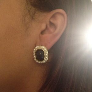 Ladies, I have 5 pairs of these brand new earrings!! They have a black gem in the middle, surrounded by mini pearls set in gold. They're gorgeous & classy!!