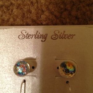 Two pairs of sterling silver plated earrings. One pair of "disco ball" shaped studs made of Swarovski crystal. One pair of dangly stars. Never worn before. I clean any earrings before shipping just to ensure they are ok.