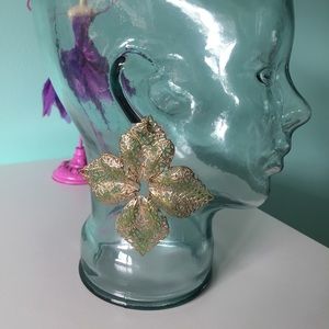 Gold and green leaf earring. Never worn. Would look great with a high bun and crips fitted white tee. Get your Beyoncé on 😉-- accessories sold separately