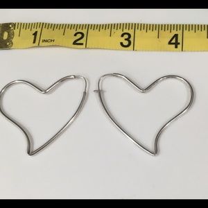 Heart-shaped earrings. Super cute, trendy and classic! About 2x2 inch. 925 Sterling silver (not silver coated). Imported from central Mexico (rich in silver mining). New. Never worn.