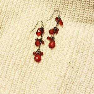 Garnet colored beaded dangle earrings. These are PERFECT for the season and would be great for any holiday party! They measure about 2.5 inches in length