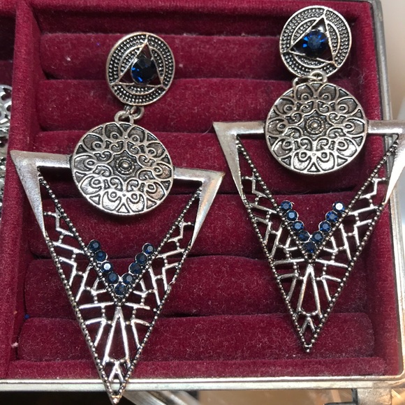 Big Earrings with small blue stones.