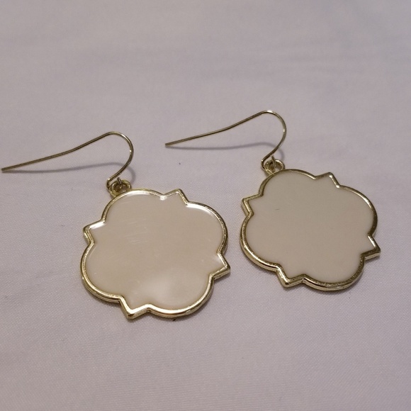Gold framed Ivory enamel Moroccan style earrings with French hook.