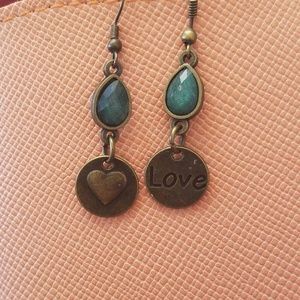 Darling casual love/heartearrings copper and small aqua color stones.