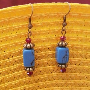 Turquoise colored small rectangle beads with silver plated and Czech glass accents.