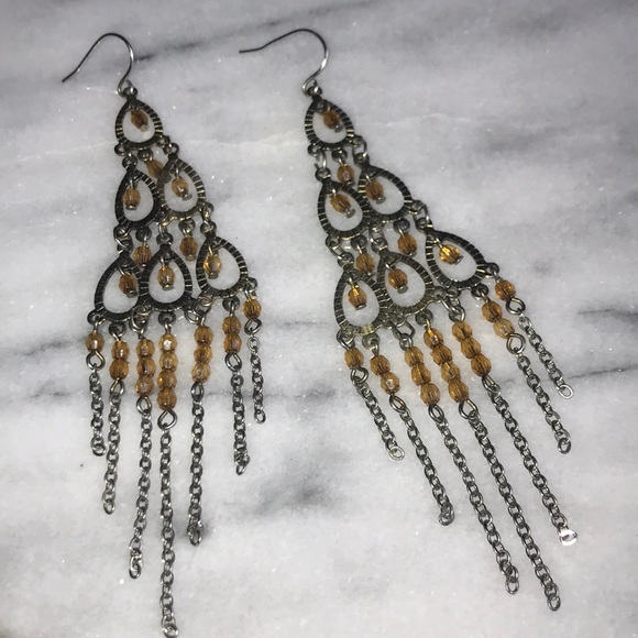 Earrings with amber colored beading