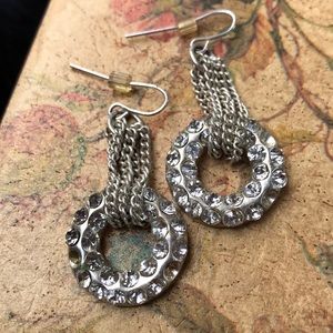 Silver toned earrings with rhinestones and chains. Missing 2 stones each but not really noticeable